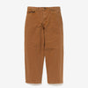 厚手の11号帆布を使用した1995ダックバギートラウザーズにウォッシュ加工を施し、年季の入った風合いに仕上げたヴィンテージ仕様。ゆったりとテーパードしたバギー型のシルエット、コインポケット付きのLポケ及びパッチポケットを前後に、腰帯の内側に「1995 | Wide」のプリント。右後帯に紙パッチ付き。