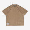 オーガニックコットン天竺を使用し、左胸にコントラストカラーのCACHALOTの刺繍ロゴ、ピグメントダイ加工によるベージュ、ブラックを2色展開したショートスリーブTシャツ。ゆったりした身幅のシルエット。襟ぐりの継ぎ目にはオリジナルテープのパイピング。右前裾にサイズを表示したCETUSの織りネーム付き。