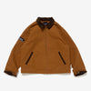 厚手の8号帆布を使用したコットンダックジャケット。襟、ポケット口布、背面の腰帯、袖口の内側にコーデュロイを切り替えた仕様。スナップボタン留めの袖口やアジャスターボタン付きの腰帯などワークウェアのディテールを踏襲。右袖にHORIZONロゴの刺繍パッチ付き。