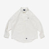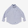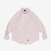 コットンオックスフォードを使用したボタンダウンシャツ。ゆったりした身幅のシルエット、B.D.カラー、ループ付きセンターボックスプリーツ、ガントレットボタン留めの剣ボロ仕様。左胸にCACHALOTの刺繍ロゴ。前身頃の裾にはSPYHOPの織りネーム付き。
