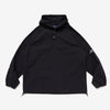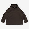 ふっくらした風合いのセルヴィッチダックを使用したフーデッドプルオーバーシャツ。ゆったりした身幅のボックスシルエット、スナップボタン留めのハーフプラケット、裾の両脇にアジャスターコード付き。左袖にHORIZONロゴのネーム、右袖にUNBEATEN by RAIN & WINDの刺繍入り。