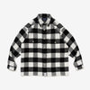 コットンフランネルを使用したバッファローチェックシャツ。ゆったりした身幅のボックスシルエット、、前身頃の左右に山型フラップポケット付き。ベーシックなブルー/ブラック、ホワイト/ブラックの2色展開。